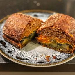 Another coffee shop gem. Cozy, warm, and welcoming vibes with the kindest staff ever. The staff cared about name pronunciation and many greeted me as I entered and exited the place. Unfortunately, I couldn't stay for long and it was packed at noon on a weekday, but I tried their Tiramisu Cold Brew and the Potato Paneer sandwich. I had to try an Indianized sandwich. I must say, it was quite delicious. The bread was freshly made; you could tell all the ingredients were high quality and fresh. I loved the addition of the pickled onions and spicy (not spicy actually) mayo. It complimented the cilantro chutney and spiced potatoes/paneer perfectly. I honestly had low expectations for this sandwich, but I'm quite impressed. I would get this sandwich again for sure. Delicious and filling. For me, it wasn't spicy at all, but it had good "curry" flavors that you find in Indian food. I'd come just for the sandwich. It makes me curious how their other sandwiches taste. Per the cashier's recommendation, I tried the popular Tiramisu Cold Brew. I liked it more when the sweetened cold foam melted and mixed more with the coffee. I didn't use my brain and totally forgot I'm not much a fan of drinks like that. I regret my coffee decision as I forgot I wanted the Cardamom Mocha Latte, but that's for next time! It was a decent drink. The real trick is to come catch a seat when it's not busy which seems rare. This place seems super popular and hard to grab a spot. I definitely see myself coming back to do some work or with a group of friends!